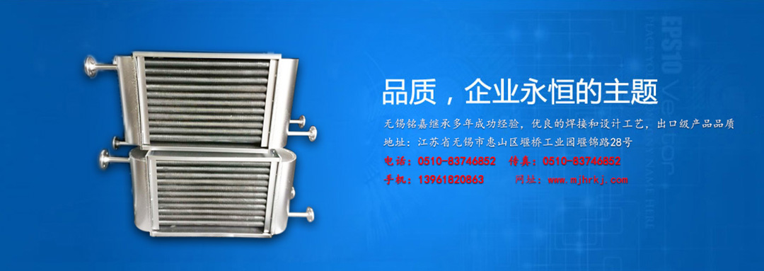 無錫銘嘉換熱科技有限公司是生產(chǎn)散熱器的專業(yè)工廠。 產(chǎn)品有:高溫水或蒸汽散熱器、高溫導(dǎo)熱油散熱器、表面空氣冷卻器、油冷卻器、鋁制串片式暖氣片、空氣冷卻器翅片管換熱器